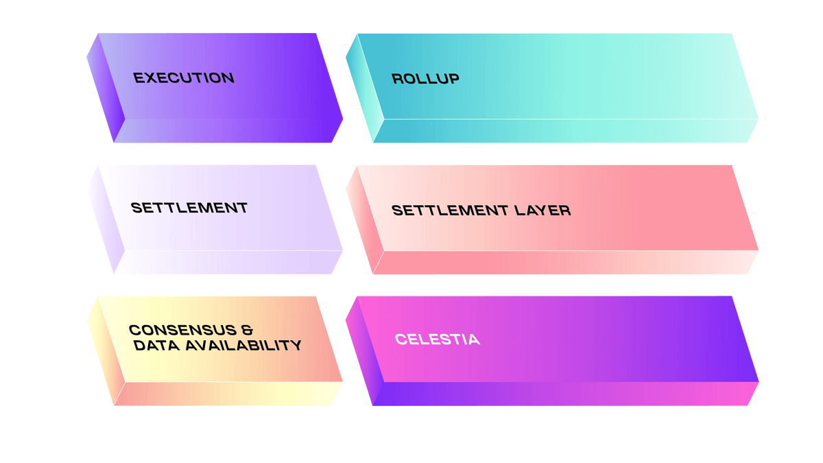 Uniquely, settlement layers are an optional feature in the modular paradigm as sovereign rollups can use a standalone consensus and data availability layer. This allows rollup developers to pick and choose the modular stack that best suits their needs.